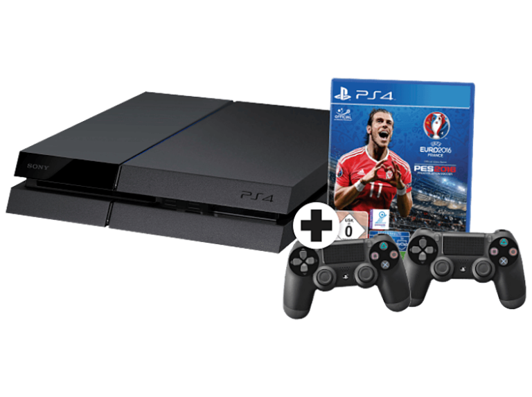 MediaMarkt.de bietet aktuell die SONY PlayStation 4 Konsole CUH-1216A 500GB Schwarz inkl. UEFA Euro 2016 und 2 Controllern für 299 € inkl. VSK an.