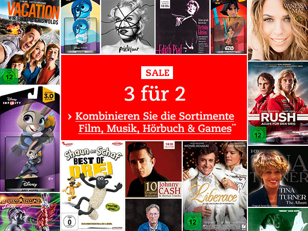 Es kann aus den Bereichen Film, Musik, Hörbücher & Games miteinander kombinieren (ausgewählte Artikel nur).
