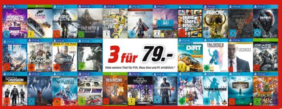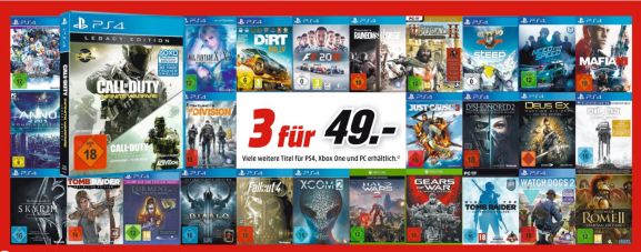 MediaMarkt.de: 3für49 & 3für79 auf ausgewählte Games [PS4, One & PC] + 2x PS4 Pro Konsolen für 598€